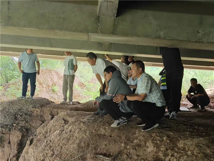 8月8日,市公路事业发展中心总工赵兵与310项目公司副总经理许立、养护管理部部长王延超,查看韩家村大桥、金水河大桥桥下水毁情况,现场制定修复方案。