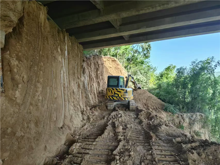 8月16日,310项目公司副总经理黄涛、后期办部长邵力子,灵宝指挥部、东上村村支书赵侃民前往施工现场协调k910+900水毁进场问题,并查看相关水毁点情况。